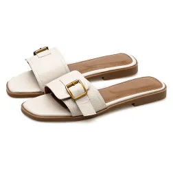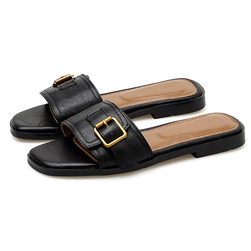 FRENCH BUCKLE GENUINE LEATHER FLAT SANDALS GB-3333