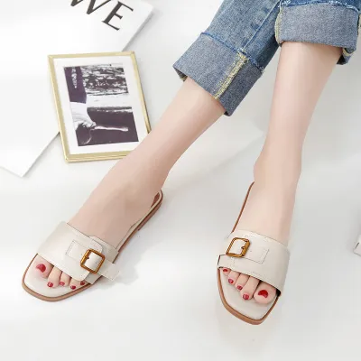 FRENCH STYLE FLAT BEACH SLIP-ON SANDALS GB-5852