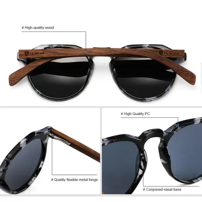 BAMBOO AND WOOD STUDS POLARIZED SUNGLASSES GB-8004GyFLAKES
