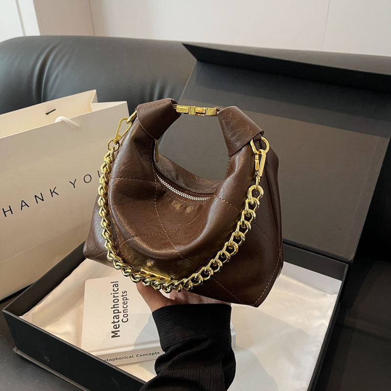 DIAMOND CHAIN SOFT LEATHER DUMPLING WOMEN'S BAG GB-6292BR
