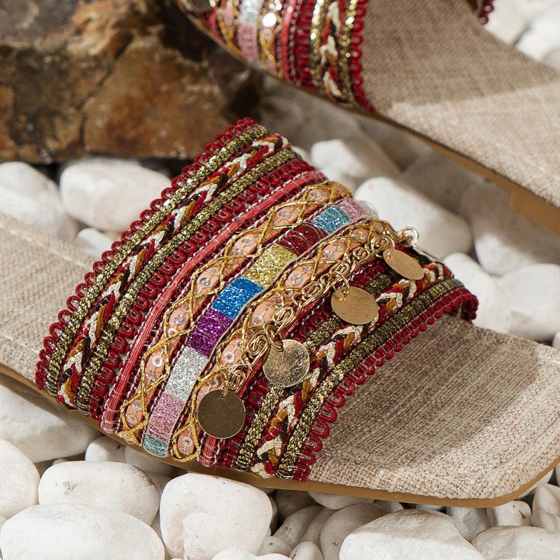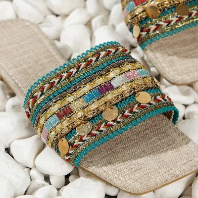ETHNIC STYLE LEISURE BOHEMIAN ONE-LINE WOMEN'S SLIPPERS GB-5877