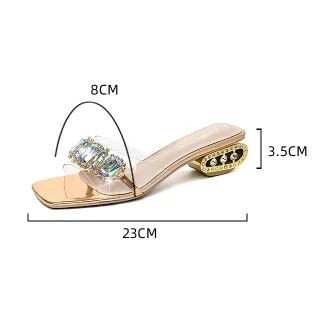 FAIRY STYLE TRANSPARENT MID-HEEL WITH DIAMONDS OUTDOOR WOMEN'S SANDALS GB-0264
