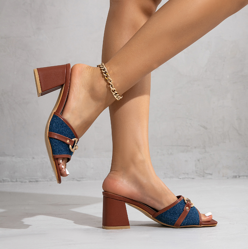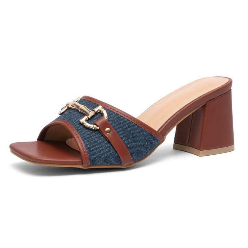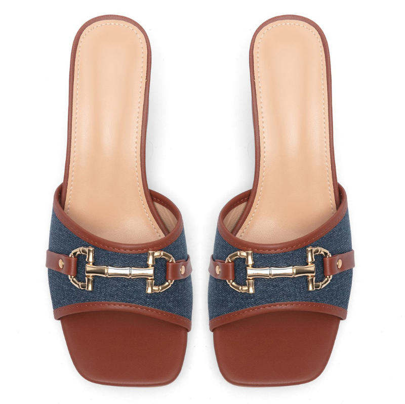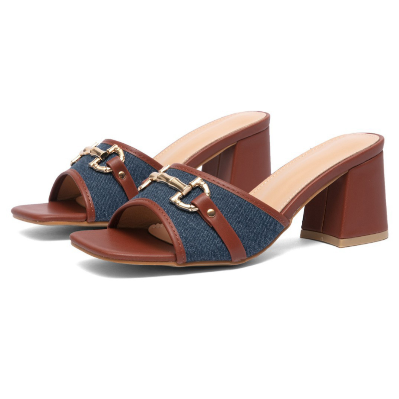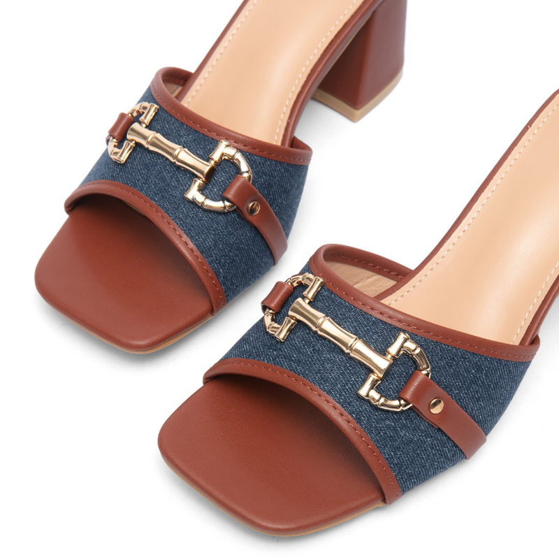 VERSATILE STYLE DENIM KITTEN HEEL WOMEN'S SANDALS GB-0137