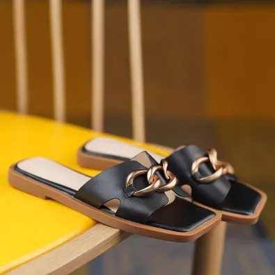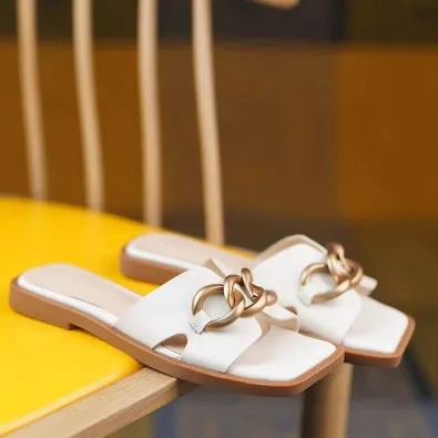 FRENCH STYLE FLAT BEACH SLIP-ON SANDALS GB-5852