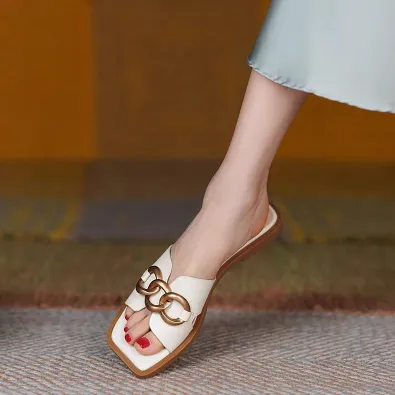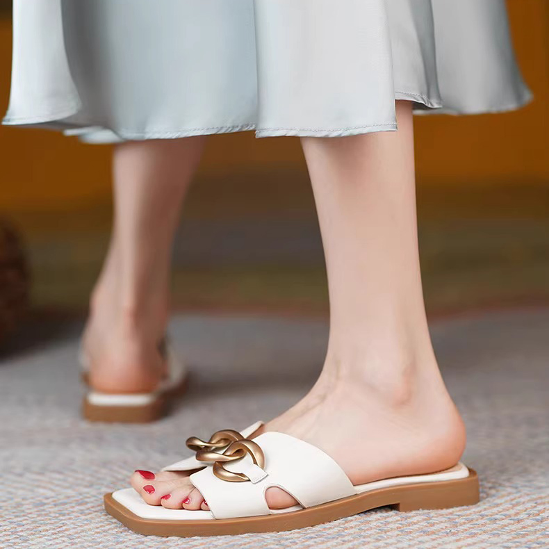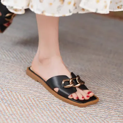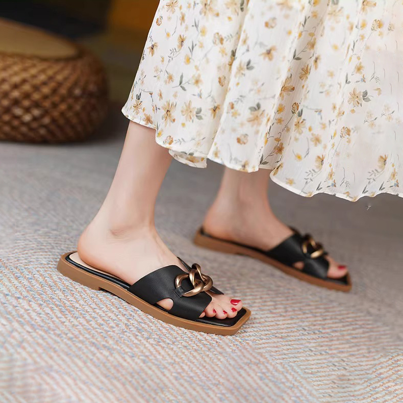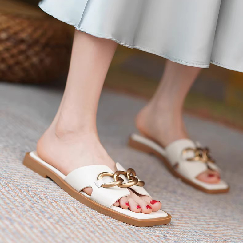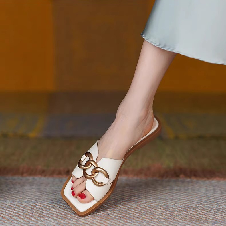 FRENCH BUCKLE GENUINE LEATHER FLAT SANDALS GB-3333