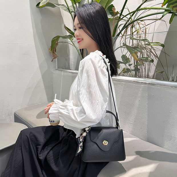GENUINE LEATHER TRENDY WITH SILK SCARF LYCHEE PATTERN ONE-SHOULDER HANDBAG GB-0471B