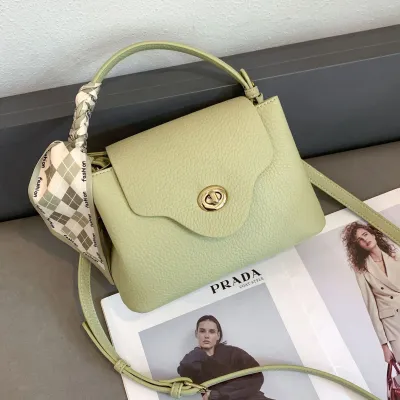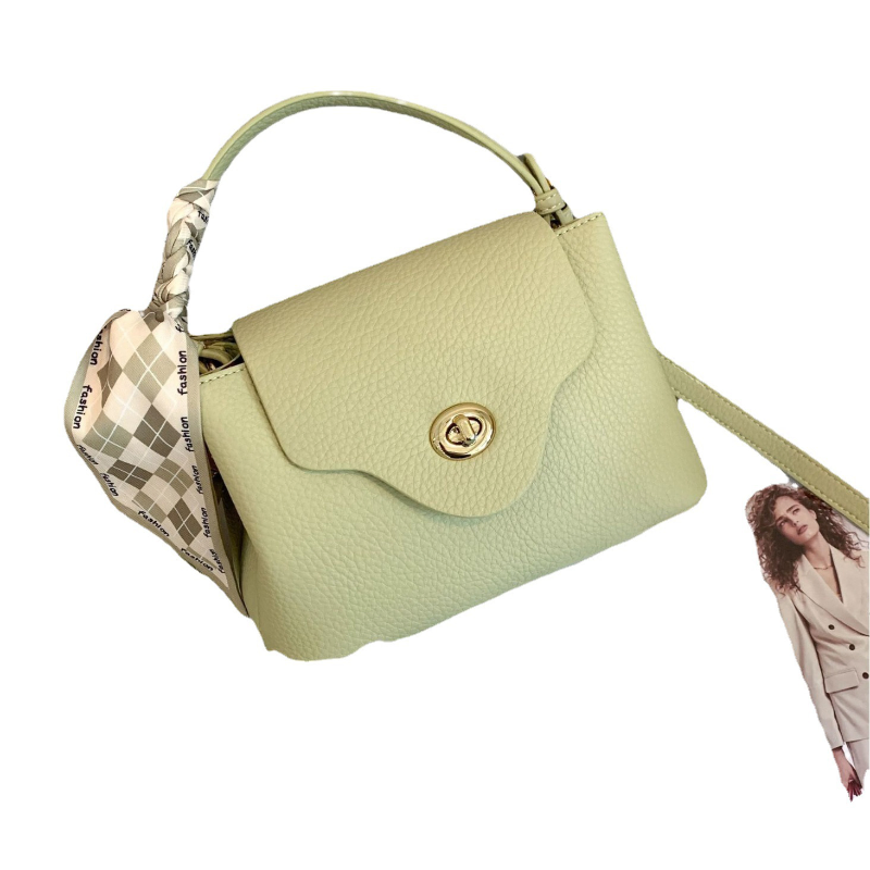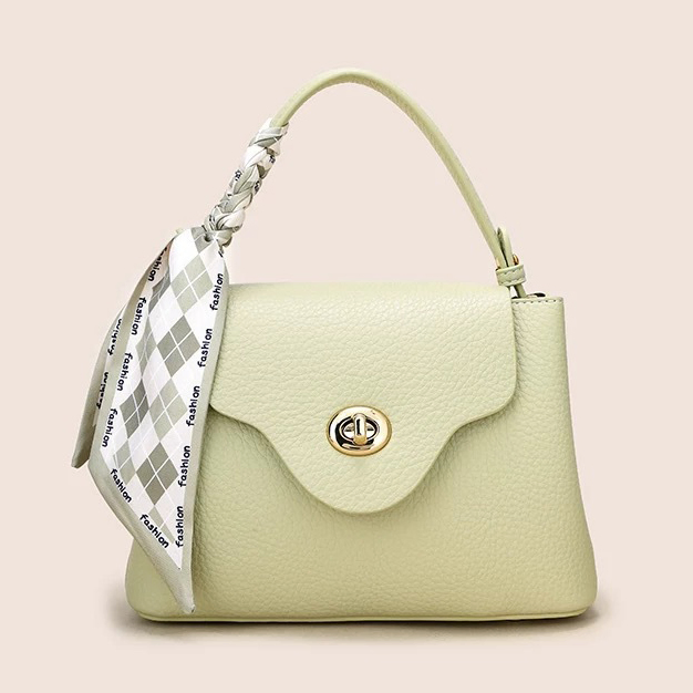 GENUINE LEATHER TRENDY WITH SILK SCARF LYCHEE PATTERN ONE-SHOULDER HANDBAG GB-0471BGr