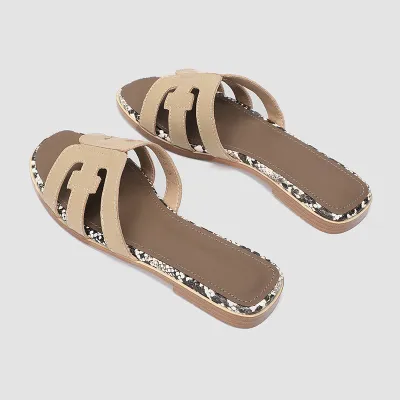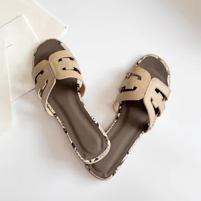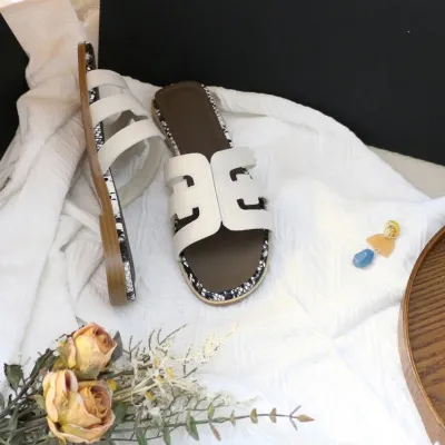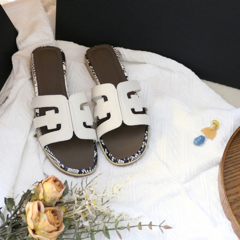 FRENCH STYLE FLAT BEACH SLIP-ON SANDALS GB-5852