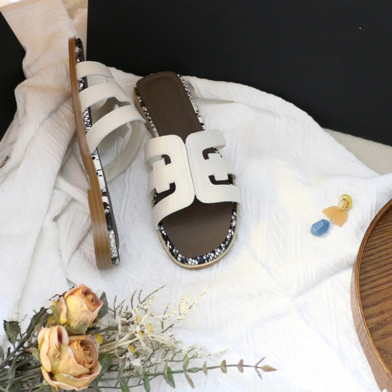 FRENCH BUCKLE GENUINE LEATHER FLAT SANDALS GB-3333