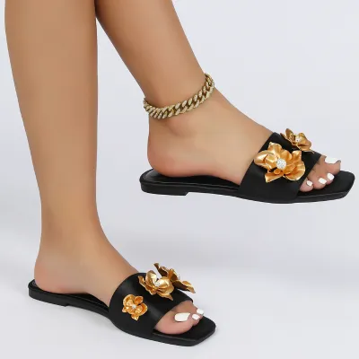 ONE-LINE FLOWER FASHION FLAT WOMEN'S SLIPPERS GB-0121