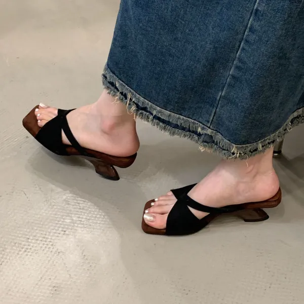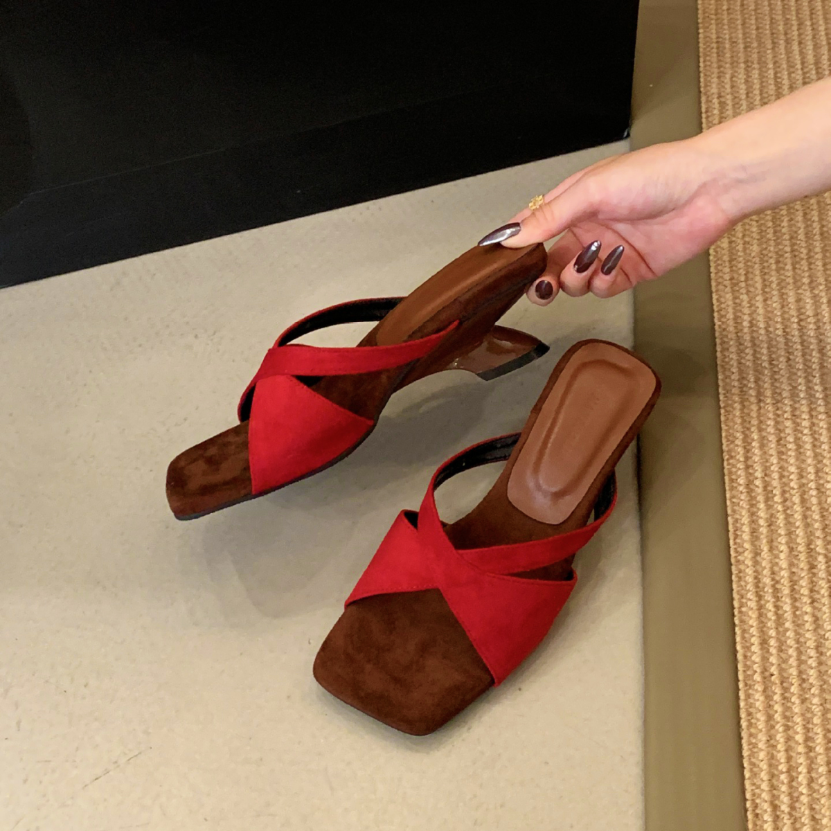 FRENCH STYLE WITH SKIRT HIGH HEEL SLIPPERS GB-3375