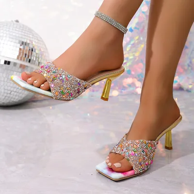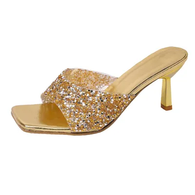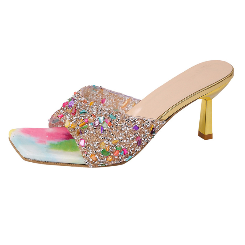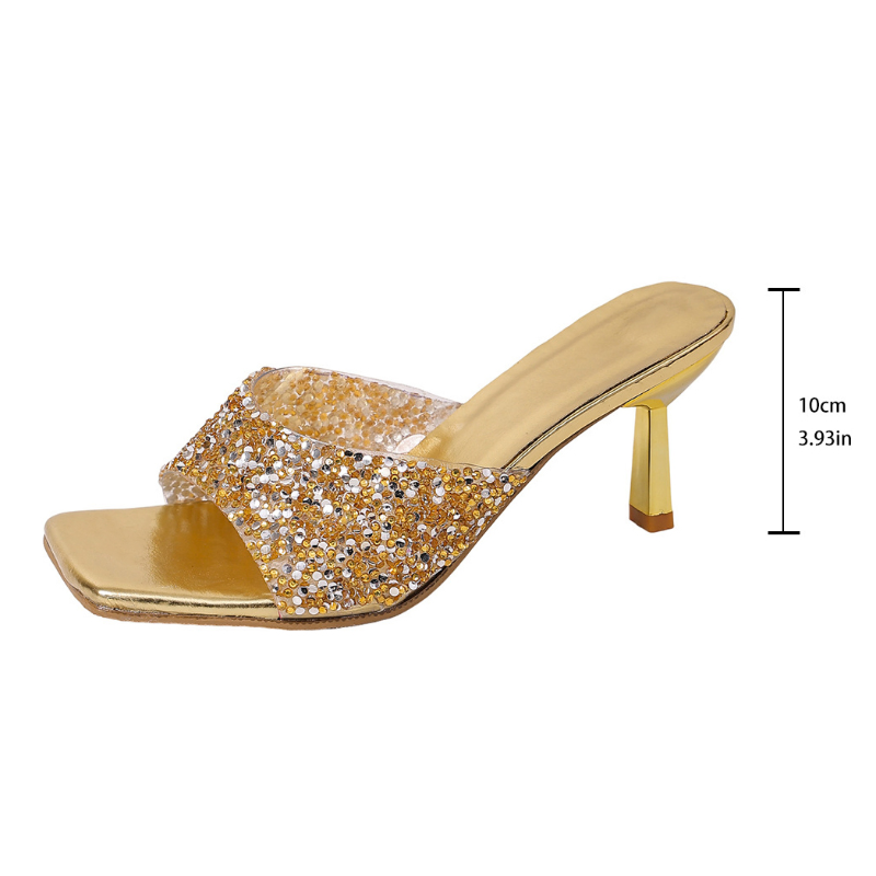 STILETTO HEELED TRANSPARENT RHINESTONE WOMEN SANDALS GB-2512