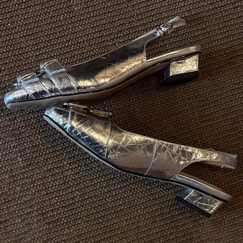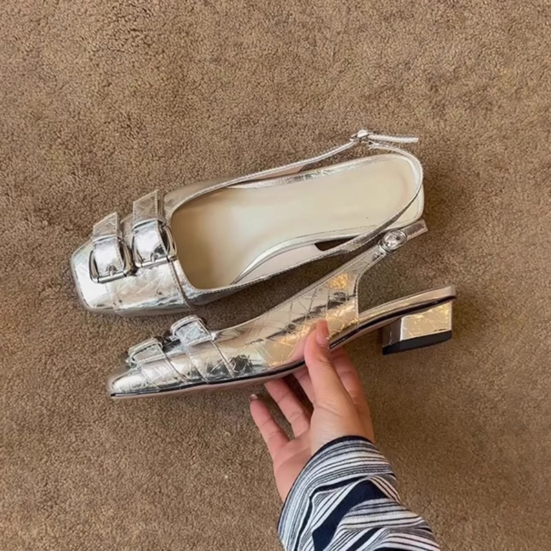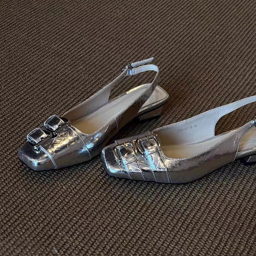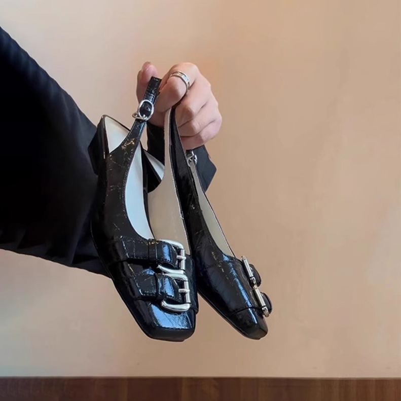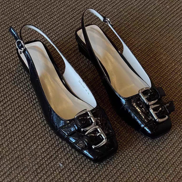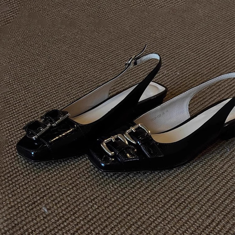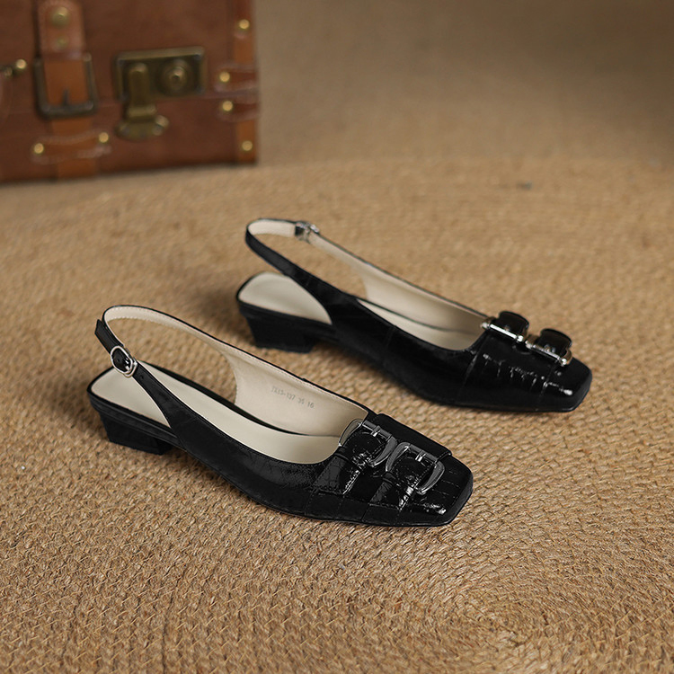 RETRO STYLE BUCKLE SQUARE-TOE WOMEN'S SANDALS GB-1335