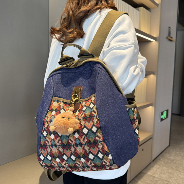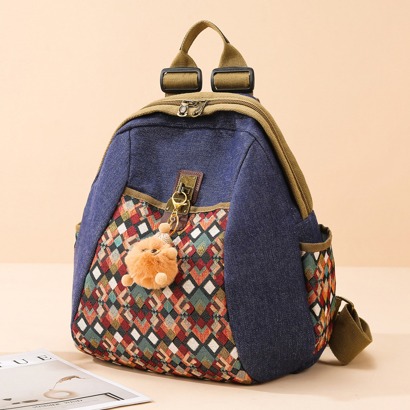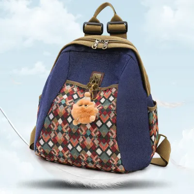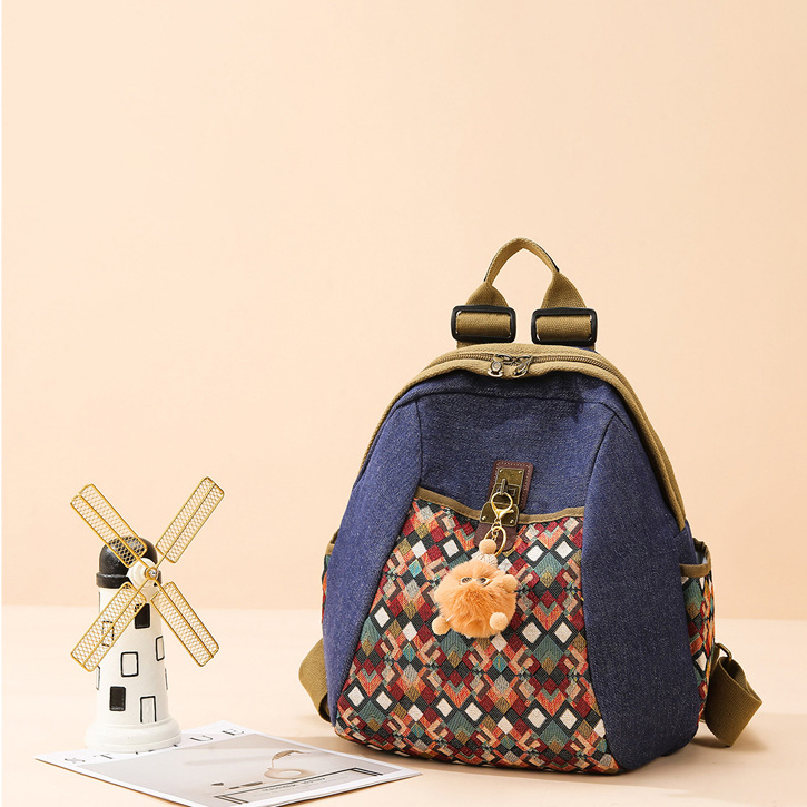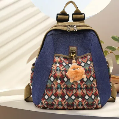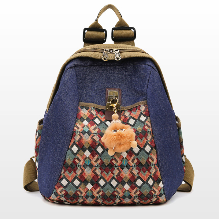 RETRO STYLE EMBROIDERED DIAMOND FABRIC WOMEN'S BACKPACK GB-5061DIBL