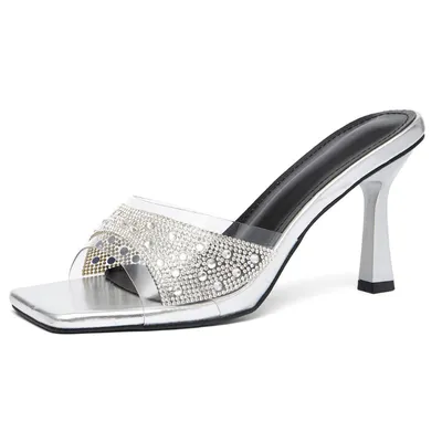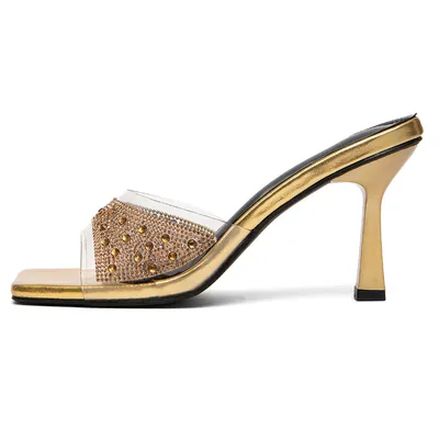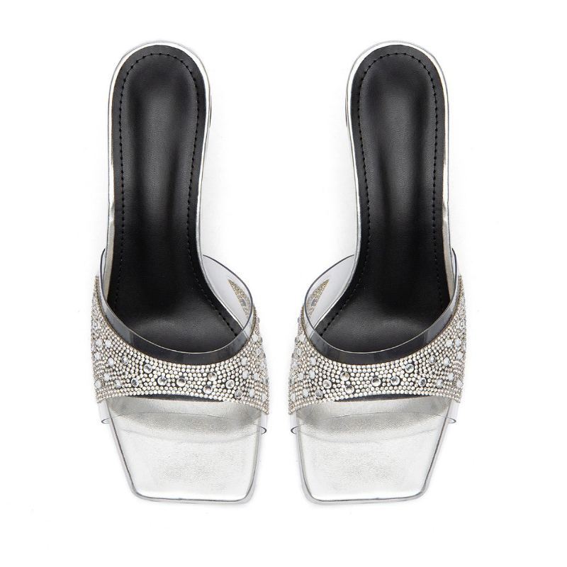 STILETTO HEELED TRANSPARENT RHINESTONE WOMEN SANDALS GB-2512